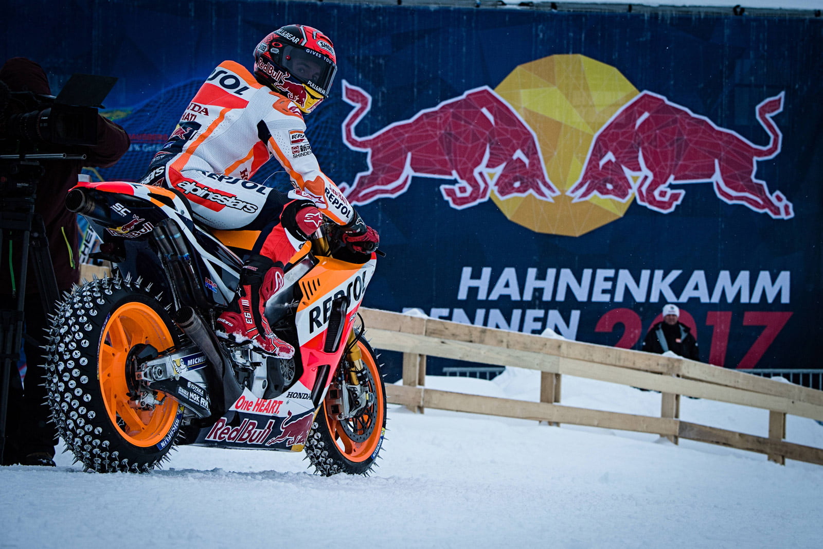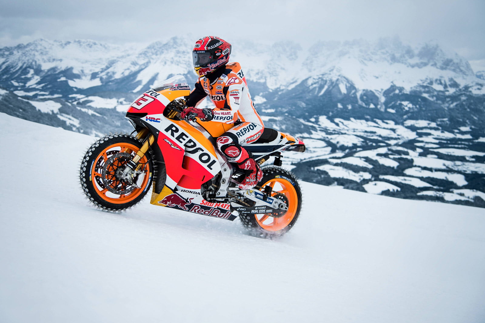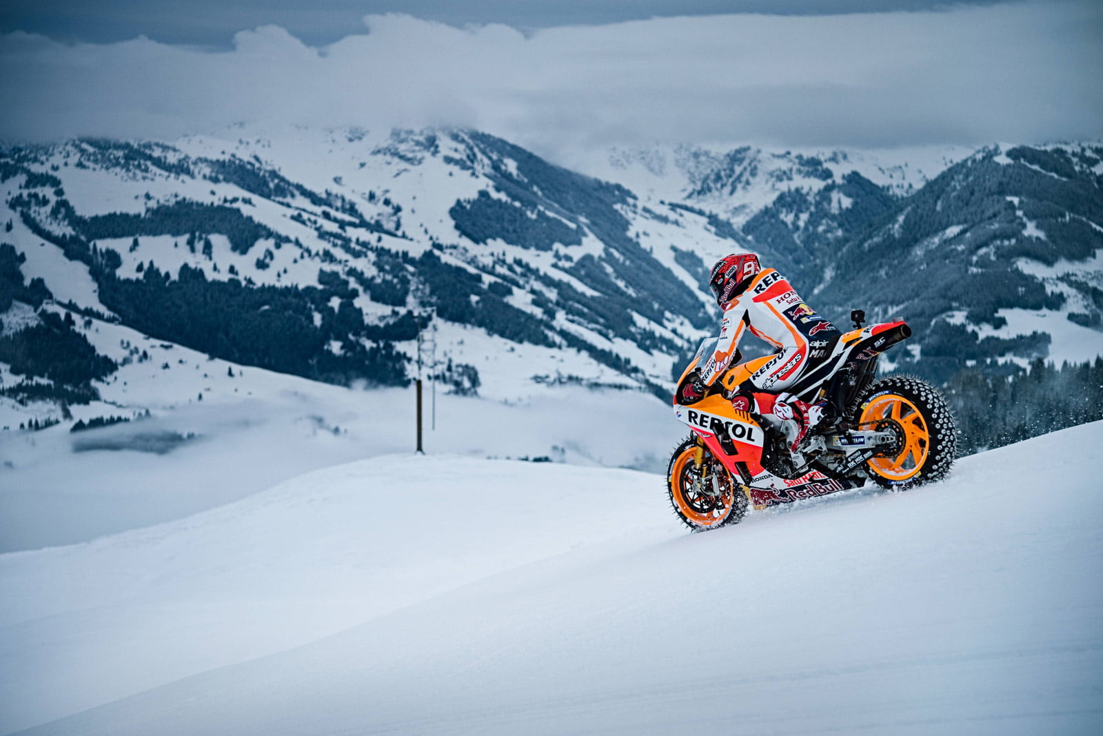 Galerie de photos HD de Marc Marquez et sa Honda RC213V sur la neige