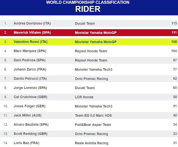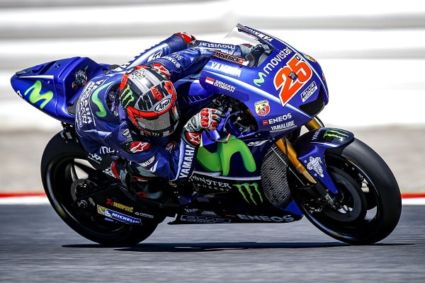 Après d’impressionnants essais hivernaux, puis deux victoires obtenues lors des Grands Prix inauguraux au Qatar et en Argentine, Vinales était solide leader du Championnat du Monde. Après un bref faux-pas au Texas et quelques difficultés à Jerez, il surfait de nouveau sur la crête de la vague en gagnant au Mans, puis en terminant deuxième au Mugello.