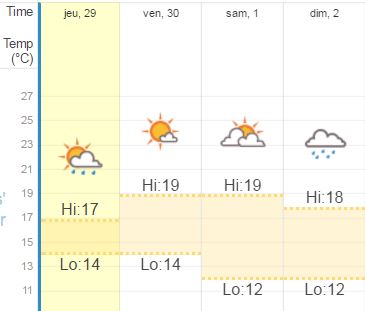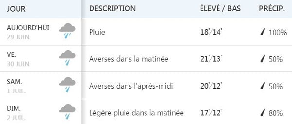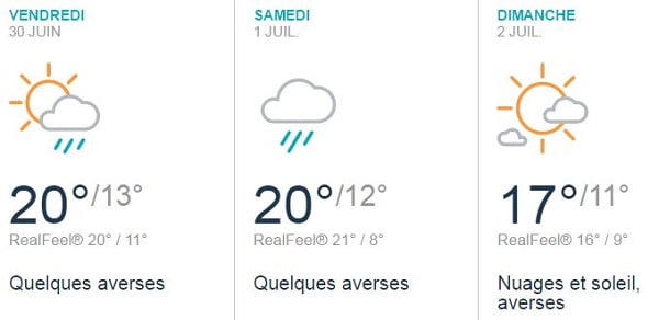 Des précipitations sont prévues pour ce week-end mais, comme on peut le constater sur les prévisions météorologiques ci-dessous, personne ne sait encore vraiment quand elles vont se déverser.