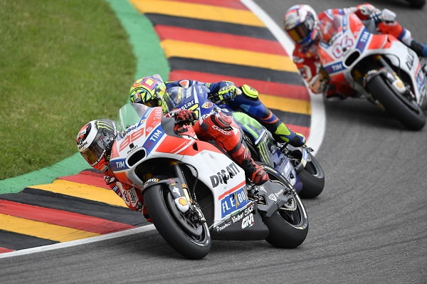 Le week-end du Grand Prix d’Allemagne de Lorenzo a comporté des hauts et des bas, et tout semblait positif en début d’épreuve quand il occupait la troisième position. Mais les choses se compliquaient par la suite avec une diminution progressive de l’adhérence du pneu arrière qui le contraignait à terminer en onzième position.