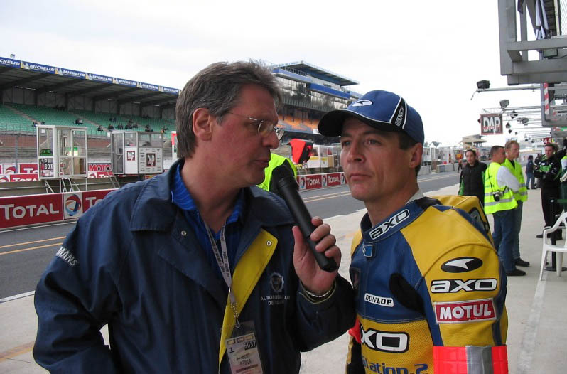 Photo : Philippe Debarle avec le regretté Bruno Bonhuil, aux 24 heures du Mans 2004. Crédit Bike70
