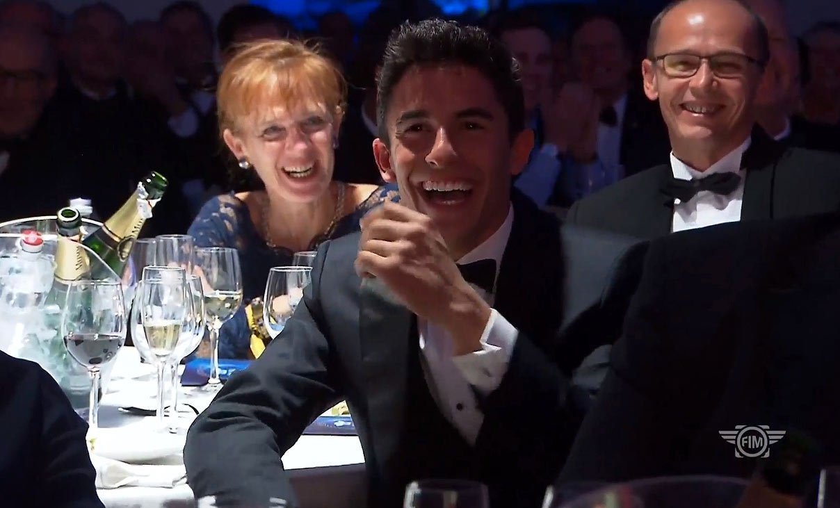 Et, bien sûr, étaient présents les Champions du monde des catégories Grand Prix que nous suivons plus particulièrement ici, à savoir Dennis Foggia (FIM CEV Moto3), Joan Mir (Moto3) Franco Morbidelli (Moto2) et Marc Marquez (MotoGP), ce dernier ayant particulièrement animé la soirée…