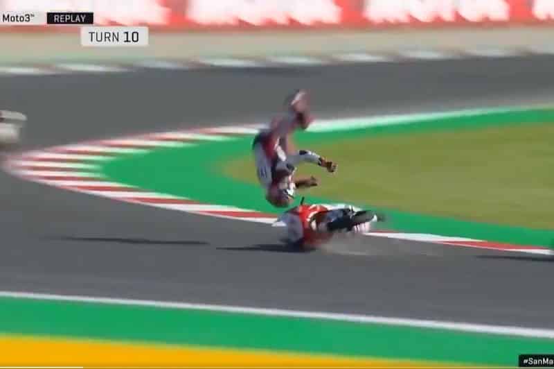 A l’issue du Grand Prix d’Autriche, Lorenzo Dalla Porta (Honda) et Arón Canet (KTM) occupaient les deux premières places du classement provisoire du Championnat du Monde avec un seul petit point d’écart entre les deux hommes. Puis l’Italien à Silverstone prenait un avantage de 14 points sur l’Espagnol (percuté lors du premier tour par Albert Arenas), ce qui lui permettait d’arriver à Misano devant les tifosi avec une avance réelle face à son adversaire.