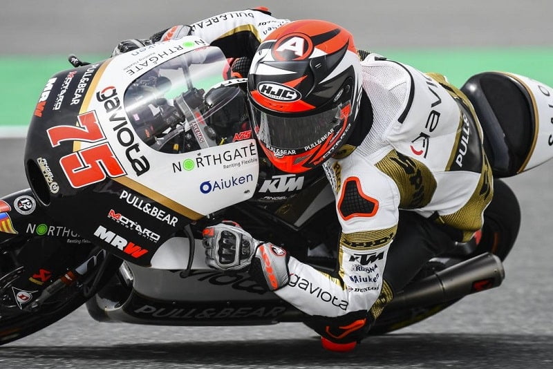 Le premier tour de référence était à porter au crédit de Romano Fenati avec un temps de 1’43.988. Il précédait Arón Canet, en 1’44.542. Le premier à chuter était Can Öncü dans le Virage 2. Son équipe (Ajo) l’amenait par prudence au PC médical pour vérification. C’était ensuite au tour du pilote wildcard Meikon Kawakami, sans gros dommage.