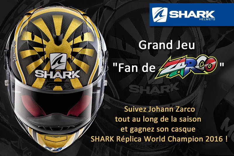 C’est l’occasion de rappeler que notre « Grand Jeu Fan de Zarco » est toujours en sommeil, et, qu’après avoir permis à deux de nos membres de gagner deux de nos trois casques Shark Réplica World Champion 2016 (série limitée), il ne demande qu’à se réactiver pour tenter de remporter le dernier.