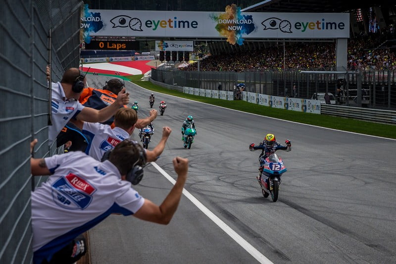 « Nous avons fait une très bonne course avec la deuxième victoire de la saison. Toute l’équipe a fait un excellent travail et je suis fier d’avoir un aussi bon groupe derrière moi. La course a été longue et fatigante. Nous avons beaucoup travaillé depuis Brno pour me faire progresser. Merci à mon équipe, à KTM et à la VR46 Academy. J’ai hâte d’être à Silverstone. »