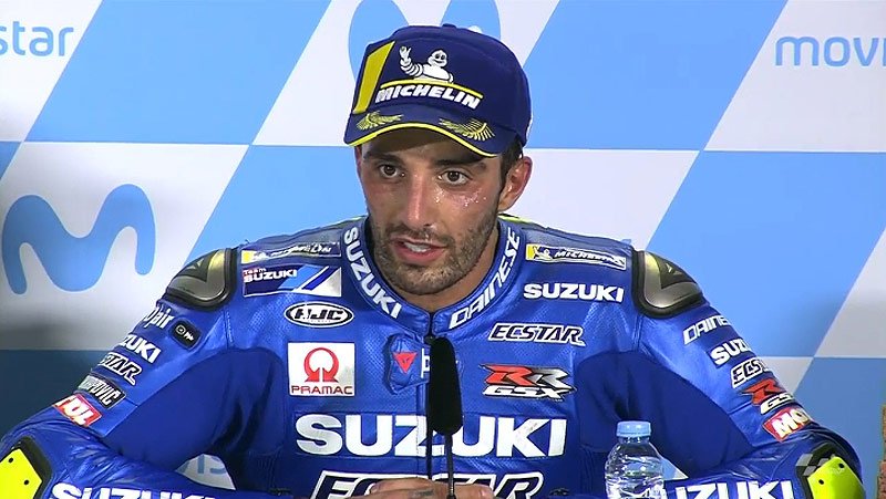 « Je pense nous avons un très bon châssis. Sur l’angle, notre moto est incroyable ! Nous avons une très bonne adhérence sur l’angle, à l’avant et à l’arrière. Donc dans les virages rapides et les virages larges, nous rattrapons beaucoup, en particulier dans les entrées de virage. Nous rentrons avec une très grande vitesse, comparé aux autres constructeurs. Mais je pense c’est un point positif sur certains circuits, et négatif sur d’autres, car quand nous avons une vitesse de passage vraiment élevée, nous nous servons beaucoup des flancs des pneus, et quand nous voulons accélérer, il n’y a pas beaucoup de gomme en contact avec le sol. La moto glisse un peu et il est difficile de la relever et d’accélérer fort. Quoi qu’il en soit, je pense par exemple que Phillip Island est toujours un bon circuit pour nous. Mais nous verrons. Je pense Ducati et Honda ont une très bonne motricité et une très bonne accélération. Ils sont également fort au freinage. Nous continuons à travailler. Je finis ma saison chez Suzuki à la fin de l’année mais je veux continuer à travailler à 100 % pour terminer cette saison de la meilleure façon possible ».