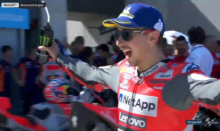A peine descendu de sa Ducati GP18 officielle après avoir obtenu in extremis la pole position sur la grille de départ du Grand Prix d’Aragon, Jorge Lorenzo s’est confié au micro du site officiel MotoGP.com avec une joie certaine…