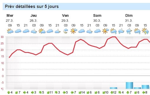 Depuis, le soleil a séché tout cela avant une nouvelle ondée, mais même si c’est encore gris aujourd’hui, il est prévu un relativement beau temps demain, vendredi et samedi, avec des températures oscillant entre 17° la nuit et 29° la journée.