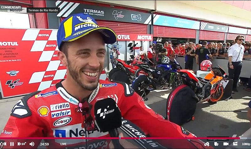 A peine descendu de sa Ducati GP19 officielle après avoir obtenu la 3e position lors de la qualification du Grand Prix d’Argentine, Andrea Dovizioso s’est confié devant la caméra du site MotoGP.com avec le bonheur visible de quelqu’un qui a su rétablir une situation par moment délicate .