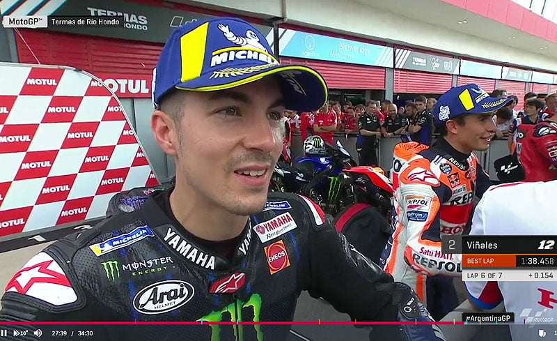 A peine descendu de sa Yamaha M1 officielle après avoir obtenu la seconde position lors de la qualification du Grand Prix d’Argentine, Maverick Viñales s’est confié devant la caméra du site MotoGP.com avec le bonheur visible d’être très compétitif.