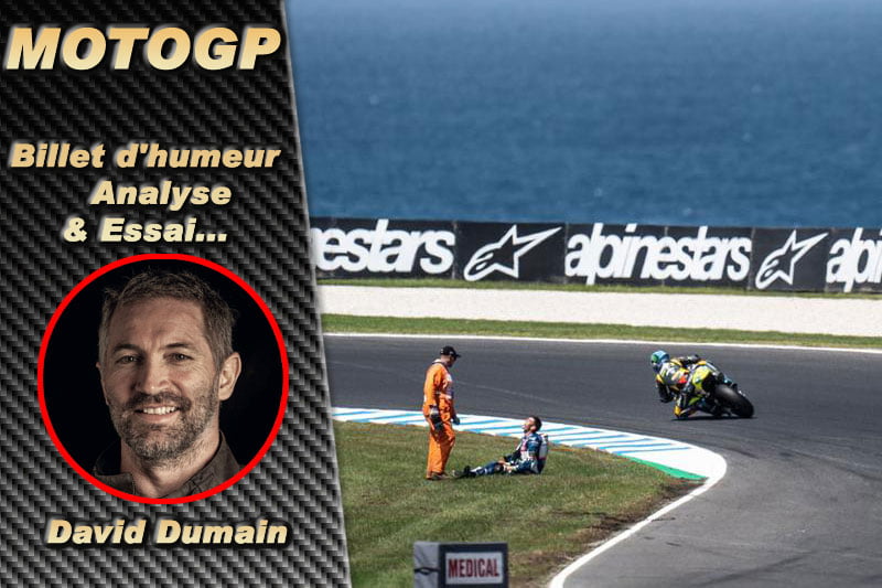 « On n’a pas compris pourquoi ils n’ont pas mis de drapeau rouge » a répondu le journaliste français Michel Turco – sur place en Australie – à la question de Margaux Levanto, chroniqueuse de l’émission de débrief After Sunday scandalisée par cette situation. Dans cette même émission, André Cazeneuve de Paddock-GP a vu dans cette absence de décision la volonté des instances dirigeantes de ne pas provoquer un retard dans la retransmission du programme-phare, le MotoGP, programmé juste après la course Moto2 et qu’un drapeau rouge aurait immanquablement perturbé. Si tel est le cas, il est purement intolérable que la vie d’un pilote de Moto2 cloué au sol à cause d’un fémur fracturé, ait été remise en l’espace de deux tours entre les mains de ses 25 adversaires toujours lancés à fond dans leur course et le frôlant à deux mètres, simplement alertés par un drapeau jaune… Et que dire des commissaires qui l’ont courageusement secouru, eux aussi têtes nues et menacés par des motos évoluant à pleine vitesse ?