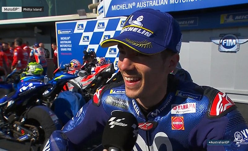 Maverick Vinales : « Je me sens incroyablement bien ! Honnêtement, cela a été une année très difficile pour moi et je peux pas réaliser que j’ai gagné. La moto a été parfaite aujourd’hui et j’ai donné mon meilleur. Je dois vraiment remercier l’équipe car ils ont fait un travail gigantesque ce week-end pour me fournir une moto gagnante, ce qui était l’objectif. Quand j’ai franchi la ligne d’arrivée, des larmes ont coulé sur mon visage, et je me souvenir de toutes ces personnes qui me soutiennent tellement et qui me donnent une motivation supplémentaire dans les périodes difficiles. Honnêtement, c’est incroyable ! Gagner en Australie, qui est un endroit où j’aime être… donc je ne suis pas sûr d’attraper mon vol demain (rires) ».