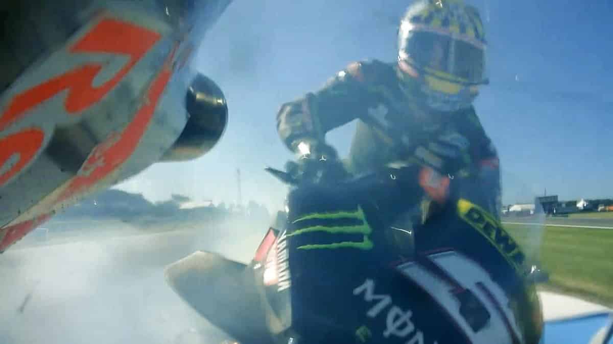 « Je suis allé le voir, simplement pour m’excuser car j’ai complètement détruit l’arrière de sa moto. Et il m’a dit de ne pas m’en faire, et que le plus important était que je ne me sois pas blessé. En tant que deux sportifs et compétiteurs, nous nous comprenons complètement l’un l’autre ».