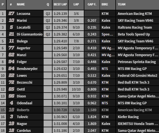 As it currently stands, @Luca_Marini_97, @alocatelli55 and the MV Augusta pairing of @DomiAegerter77 and Stefano Manzi are set to progress through! 👏
