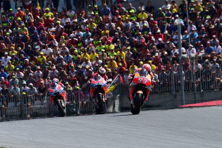 Marc Marquez a de nouveau échoué dans sa conquête d’un Red Bull Ring qui fait partie de ces circuits où il n’a pas encore réussi à concrétiser. Et comme l’an passé, il s’en est fallu d’une poignée de millièmes à cause d’une satanée Ducati. Mais cette fois, c’était celle de Lorenzo qui sera son équipier l’an prochain, chez Honda…