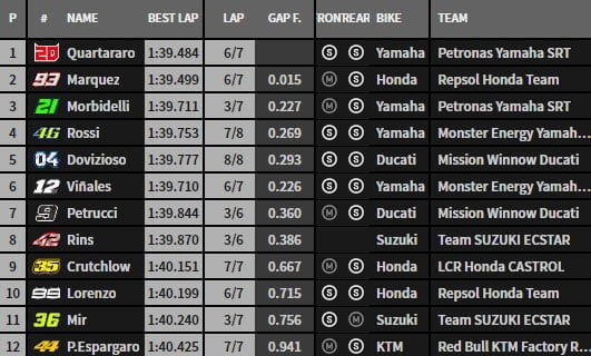Après, c’est toujours l’histoire du respect du règlement, et le panel des commissaires (sous la direction de Freddie Spencer) a jugé cela dangereux et donc rétrogradé Maverick Viñales de 3 places sur la grille de départ.