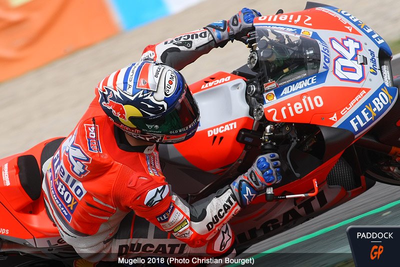 À la fin du premier tour lancé, Valentino Rossi mène le bal en 1’41.142 avant de passer le relais à Danilo Petrucci aux tours suivants, en 1’40.094.