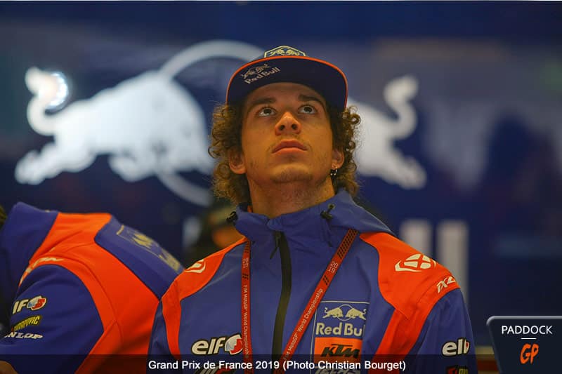 Et pourtant, si les deux premiers cités exploitent au mieux le récalcitrant châssis tubulaire, l’un grâce à son expérience de la catégorie intermédiaire, l’autre grâce à son talent concrétisé par un titre de champion du monde Moto3, il ne se passe pas grand-chose du côté de l’Italien managé par la VR46 Riders Academy qui officie actuellement sous les couleurs Red Bull KTM Tech3.