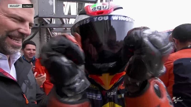 « Je ne peux que remercier cette excellente équipe, avec le PDG Stefan Pierer, avec Pit Beirer, avec Mike Leitner, avec tous les gars de mon stand, avec Red Bull, avec tous les fans dans les gradins qui croisent les doigts pour KTM. Notre performance est le résultat d’un travail incroyable, chez nous en Autriche, à Mattighofen et ici sur le circuit ».