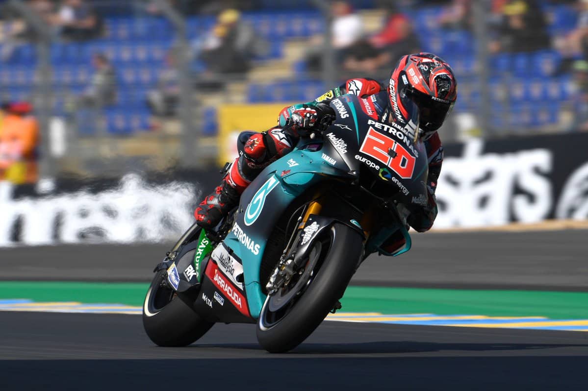 Fabio Quartararo a fait une bonne entame de week-end devant son public au Mans, sur le tracé du Bugatti. Au combiné des deux séances d’essais libres du jour, il se classe troisième. Le pilote Petronas Yamaha sait néanmoins que le plus dur reste à venir demain lors des qualifications surtout si la pluie s’en mêle, le pilote redoutant de piloter, faute d’expérience, sur une piste humide.