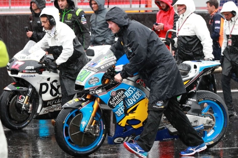 Franco Morbidelli a été très performant ce week-end sur le tracé de Silverstone. Malgré une vingtième place en FP1, il a terminé quatorzième des FP2 et surtout septième des FP3, un excellent résultat. Malheureusement, il n’est pas parvenu à se qualifier directement pour la Q2, mais son dixième temps en FP4 laissait espérer de bonnes choses. Néanmoins, cette séance a été interrompue au drapeau rouge suite aux chutes de plusieurs pilotes, dont Morbidelli, dans une zone détrempée du circuit. Il n’a pu éviter la chute et sa moto est allée percuter Esteve Rabat, dans des conditions assez apocalyptiques : « Le reste de la piste était presque sec, mais lorsque nous sommes arrivés dans cette partie, c’était l’enfer. Ensuite, j’ai perdu l’avant. Il y avait des drapeaux à cet endroit, là où d’autres pilotes avaient chuté, mais je n’avais rien vu avant d’arriver là. La fin de la FP4 était assez dangereuse. Ce sont surtout les conditions des virages 7 et 8 car avec l’accumulation d’eau, c’est impossible de rouler Nous avions des pneus pluie mais j’ai vu un mur d’eau devant. J’ai essayé de ralentir en arrivant dans la zone, mais c’était impossible de contrôler la moto. »