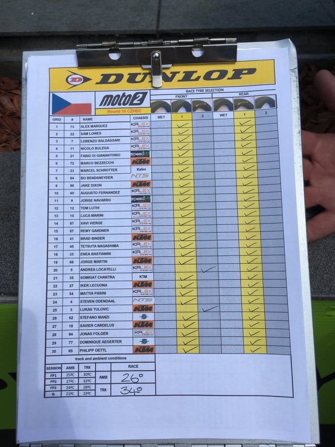 Si les caprices de la météo tchèque ont quelque peu rendu aléatoire la qualification des Moto2, Álex Márquez (Kalex, Estrella Galicia 0,0 Marc VDS) s’en est néanmoins sorti comme un chef, c’est-à-dire comme son frère, en reléguant le reste de ses adversaires à plus de 2 secondes grâce à l’utilisation de pneus slicks sur une piste séchante.