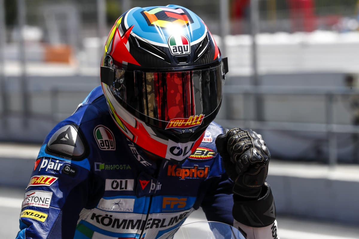 25° dans l’air; 34° sur la piste et un ciel couvert mais guère menaçant sont les conditions proposées aux pilotes pour les 40 minutes d’exercice. Darryn Binder chute d’entrée au virage 7 alors que la première référence est l’apanage d’Arbolino en 2’09.344. Puis Fenati donne le change à son équipier en 2’09.308. C’est juste six millièmes de mieux ! Canet est septième et Dalla Porta 18e après un quart d’heure de joute.