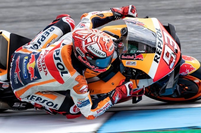 The wet conditions don't appear to be stopping @marcmarquez93 so far! 💪