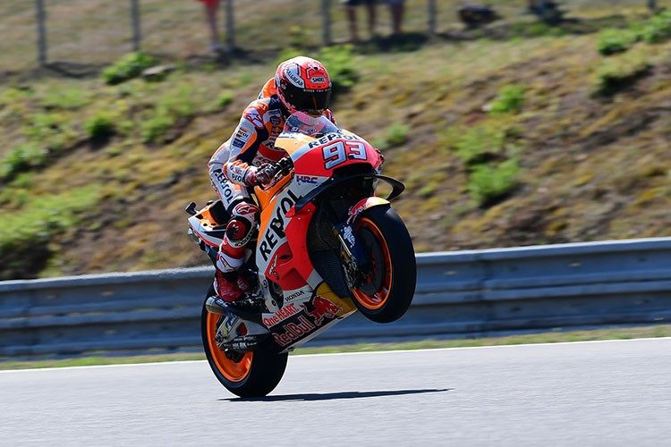 Marc Marquez était déjà venu à Brno pour des tests le mois dernier si bien qu’on l’attendait tout feu tout flamme pour cette entame du Grand Prix de la République Tchèque. Au lieu de ça, voilà qu’il a laissé ce vendredi la vedette à son équipier Dani Pedrosa tandis que lui, pointe seulement dixième. Et donc à la frontière de la Q.1 ! Mais que l’on ne s’affole pas, tout ça est pensé en fonction d’une stratégie. Qui était celle de Dovizioso en 2017 !