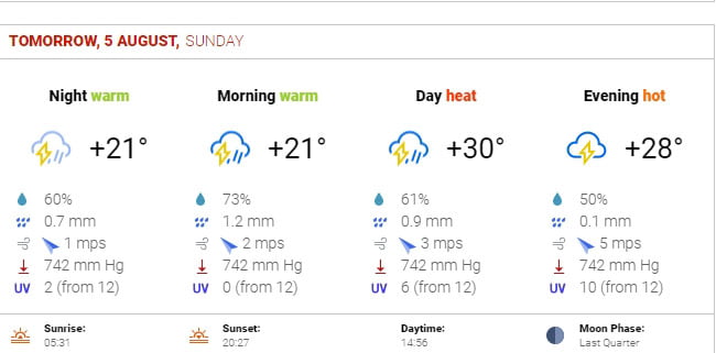 Car, si la météo officielle ne prévoit pas réellement des températures plus basses, elle annonce par contre 73 % de risque de pluie pour demain matin et 61% pour demain après-midi.