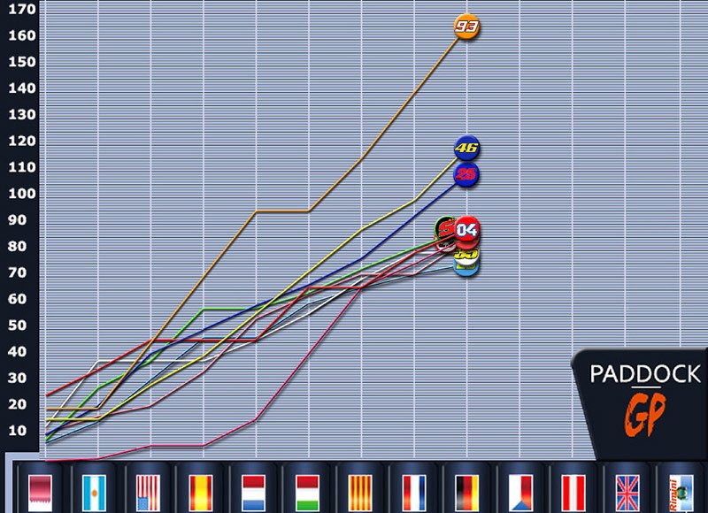 Les neuf derniers combats ont placé Marc Marquez dans une position idéale pour rafler un septième titre absolu. Les pilotes Yamaha suivent à distance respectable et espèrent un réveil du constructeur d’Iwata tandis que Ducati veut retrouver le chemin de la victoire. Chez Suzuki et consorts, on est prêt au coup d’éclat. Mais ce sera loin d’être simple : l’an passé, on avait eu droit à une démonstration de Marquez qui concrétisait tant en course qu’aux qualifications…