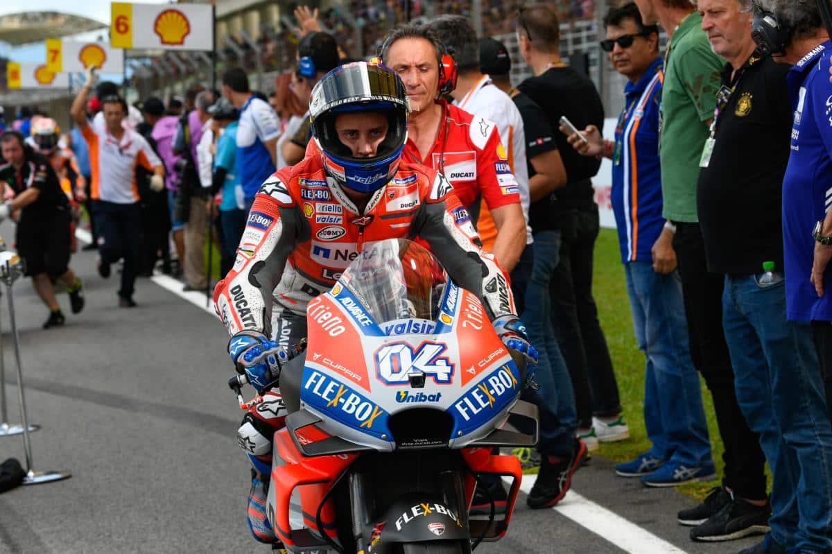 Pour Andrea Dovizioso , jusqu’à ce dimanche après-midi en Malaisie, tout allait bien à Sepang. En course, on allait voir ce que l’on allait voir, le GP18 était meilleure que la GP17 et l’Italien était prêt à affronter n’importe quelles conditions avec sa moto rouge. Et on a vu. Un pétard mouillé sur piste sèche, une prestation plus modeste qu’à Phillip Island il y a une semaine, tracé pourtant ennemi de la Desmosedici, au contraire de la Malaisie ! Un naufrage quasiment collectif puisque derrière DesmoDovi sixième on trouve trois autres machines de Borgo Panigale. Dovizioso tombe de haut et cherche à comprendre.