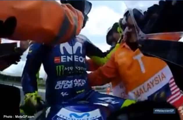 A Sepang, Valentino Rossi a repoussé un commissaire de piste qui essayait de prendre un selfie à la fin de la course. Le règlement est en accord avec le pilote de Tavullia.