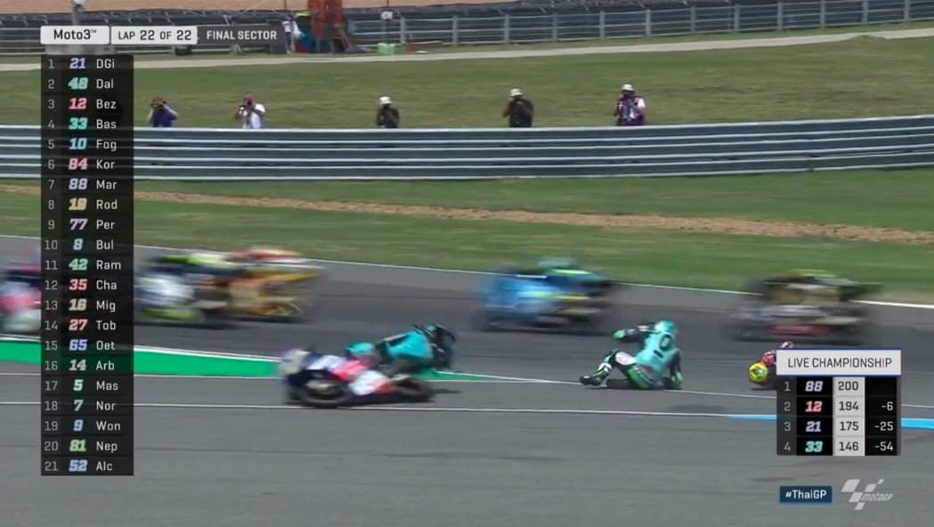 @FabioDiggia21 wins the first ever Grand Prix race in Thailand ✊@dallap48 takes second and @dennisfoggia71 avoids the carnage to take a podium! 👊#ThaiGP 🇹🇭 pic.twitter.com/G0pzu42hiT