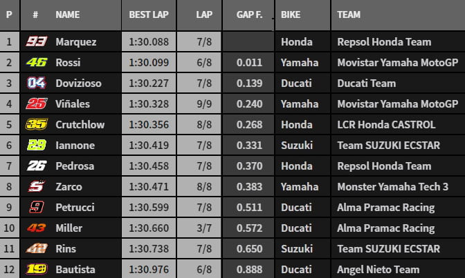 Crédit photos et classement: MotoGP.com