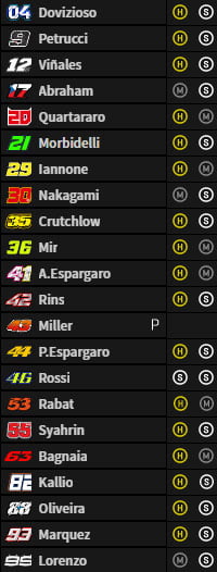 Au terme d’une première journée marquée par la violente chute de Marc Márquez et la domination de Fabio Quartararo, la FP3 de ce matin sur une piste séchante n’a pas permis aux pilotes de continuer leur acclimatation à la piste thaïlandaise et ce sont donc Fabio Quartararo, Maverick Viñales, Franco Morbidelli, Jack Miller, Valentino Rossi, Marc Márquez, Aleix Espargaró, Andrea Dovizioso, Joan Mir et Álex Rins qui se sont pré-qualifiés pour la Q2, au grand dam de Danilo Petrucci et Cal Crutchlow.