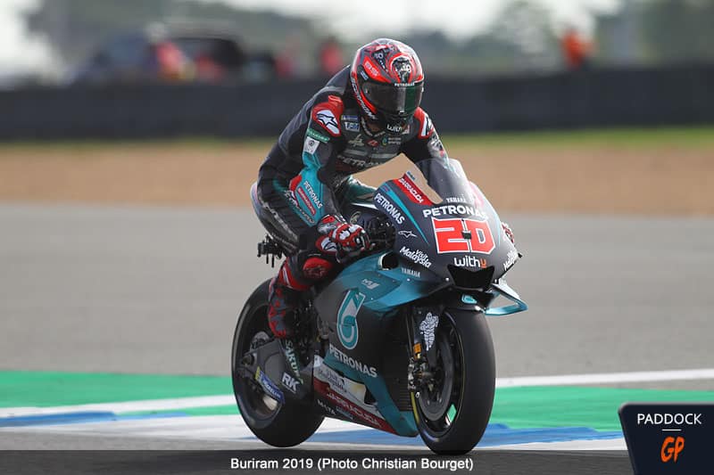 Au terme d’une première journée marquée par la violente chute de Marc Márquez et la domination de Fabio Quartararo, la FP3 de ce matin sur une piste séchante n’a pas permis aux pilotes de continuer leur acclimatation à la piste thaïlandaise et ce sont donc Fabio Quartararo, Maverick Viñales, Franco Morbidelli, Jack Miller, Valentino Rossi, Marc Márquez, Aleix Espargaró, Andrea Dovizioso, Joan Mir et Álex Rins qui se sont pré-qualifiés pour la Q2, au grand dam de Danilo Petrucci et Cal Crutchlow.