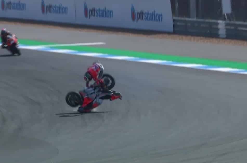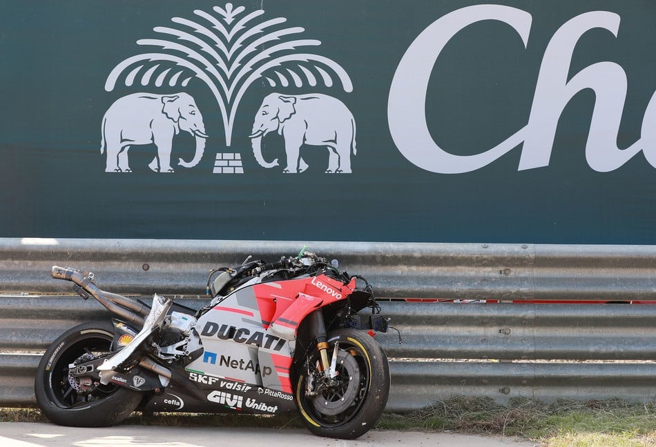 La moto revenue, Davide Tardozzi confirmait la piste technique ce qui rassurait le pilote qui se demandait où il avait bien pu fauter pour en arriver là. Le Majorquin était finalement transporté à l’hôpital le plus proche en ambulance pour de plus amples examens et ces derniers se révéleront rassurants. Hormis quelques contusions au poignet gauche et genou droit, le pilote Ducati ne souffre en effet pas de nouvelles fractures. Les médecins l’ont ainsi déclaré apte pour la suite de événements. Néanmoins, le docteur Charte ajoutait à ce premier bilan : « je terminerai l’examen à l’hôpital de Buriram. Une fois cette expertise terminée, nous déciderons. Sur le plan psychique, il est touché ».