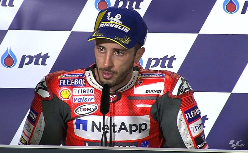 Grand Prix de Thaïlande Buriram MotoGP J.3 Conférence Andrea Dovizioso : la bagarre mais le respect, gérer les pneus, développer la GP 19, etc. (intégralité)