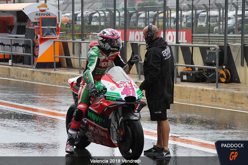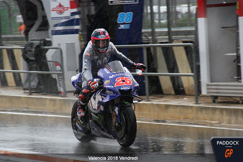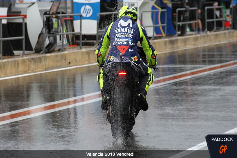 Un déluge par ci, un déluge par là, les pilotes MotoGP ont passé beaucoup de temps dans leur box en ce premier jour du Grand Prix de Valence…