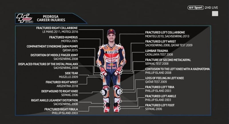 « Ils ne pourront plus me voir et rêver. Je suis très ému, mais j’ai vécu mieux que je ne l’aurais espéré ». Pedrosa a ensuite dressé le bilan de ces 18 années de compétition, nombre égal d’années où un garçon qui atteint sa maturité : « je me suis battu pour mes objectifs, avec des pilotes de haut niveau et j’étais l’un d’eux. J’ai réussi à suivre mon chemin malgré les difficultés, notamment en MotoGP. Je me donne les meilleures notes, en particulier en ce qui concerne ma carrière. Car tout a commencé avec mon père, à la maison ».