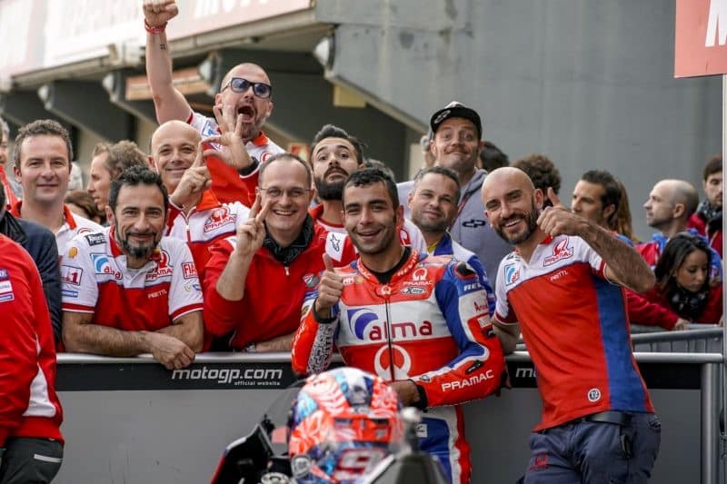 Petrucci a encore fait une belle démonstration mais le top 5 se tenant en seulement un dixième, il a dû s’incliner face à Maverick Viñales, Álex Rins et Andrea Dovizioso et ainsi terminer quatrième et meilleur pilote indépendant : « Je suis très satisfait car cela s’est bien passé, autant lors des conditions de pluie que de piste sèche. Honnêtement je suis un peu déçu car j’aurais pu terminer en première ligne mais bon, ça ira comme ça. Nous sommes compétitifs mais il est clair que je serai plus performant en conditions de pluie. »