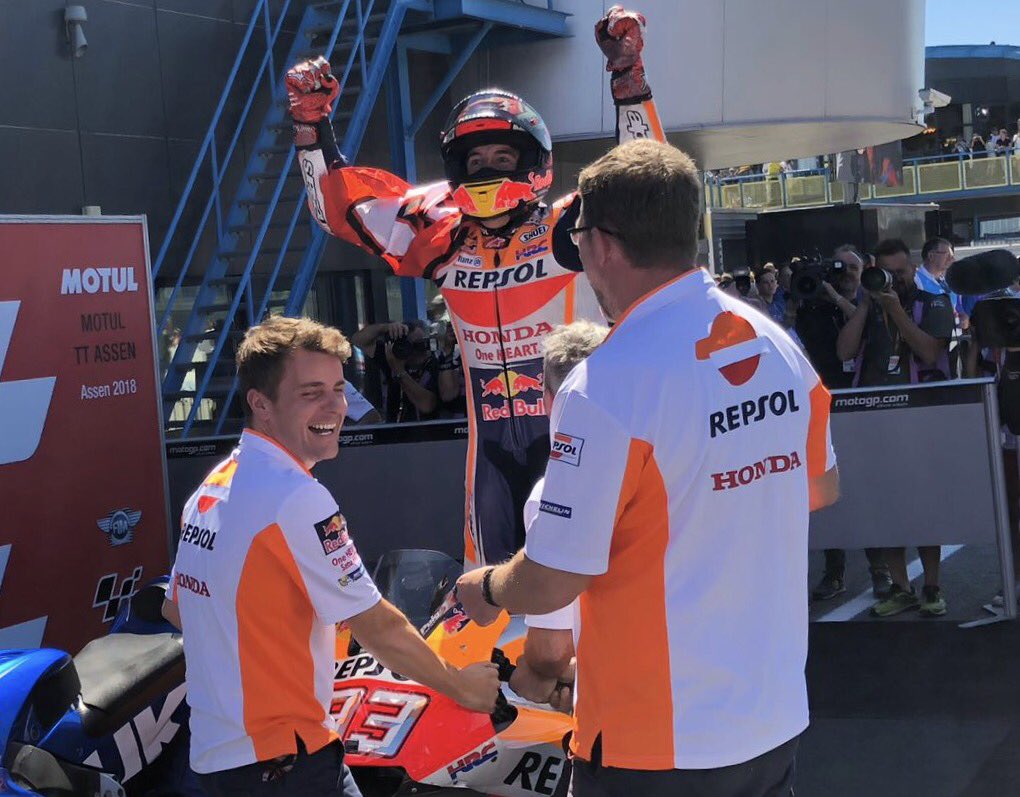 Il est des victoires qui, parfois, comptent plus que d’autres. Et celle arrachée, littéralement, à Assen par Marc Márquez sera à marquer d’une pierre blanche. Jamais une course n’avait été aussi intense cette saison. Une bataille de tous les instants ou au moins sept pilotes pouvaient l’emporter. Mais à la fin, c’est Marc Márquez qui s’est mis au-dessus de la mêlée. Le voilà plus solidement encore installé aux commandes du championnat, à quinze jours d’un Grand Prix d’Allemagne qui se déroulera sur un Sachsenring où il n’a jamais été défait depuis qu’il est en MotoGP…