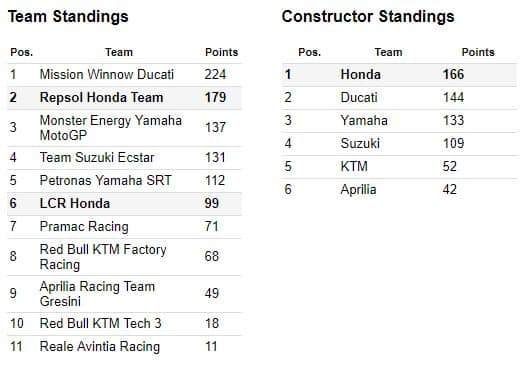 A l’issue de ce Grand Prix, Jack Miller occupe la huitième position du classement provisoire du Championnat du Monde avec 60 points, soit 5 derrière Viñales. C’est sa cinquième place dans les points de l’année, les autres allant de la 3e à la 5e. Il compte également trois abandons.