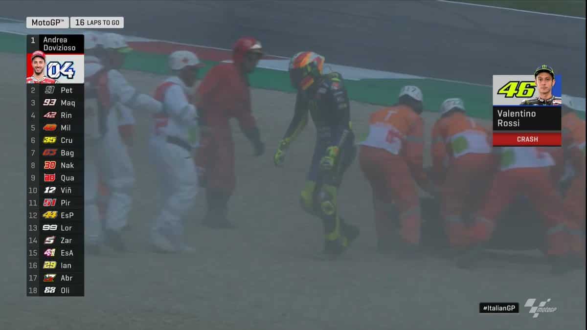 A l’arrivée de ce Grand Prix d’Italie, Marc Márquez ne regardait pas seulement son classement devant Dovizioso en faisant le bilan en vue du championnat. Il constatait aussi l’abandon sur chute d’un Valentino Rossi qui n’aura jamais eu matière à se satisfaire dans son rendez-vous national. A tel point que le Doctor avoue ne pas se souvenir durant sa longue et prolifique carrière d’un meeting aussi déprimant…