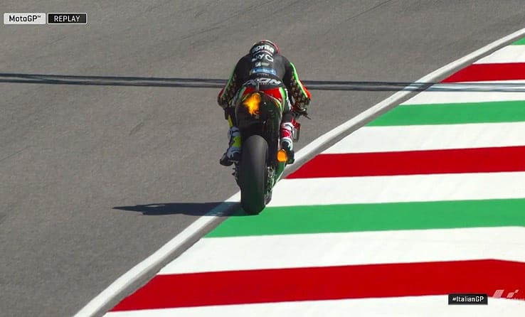 Il faut dire que l’Aprilia du pilote catalan arborait aujourd’hui des ailerons doubles qui, s’ils amélioraient l’adhérence du train avant, pénalisaient la RS-GP dans la 2e plus longue ligne droite du championnat.