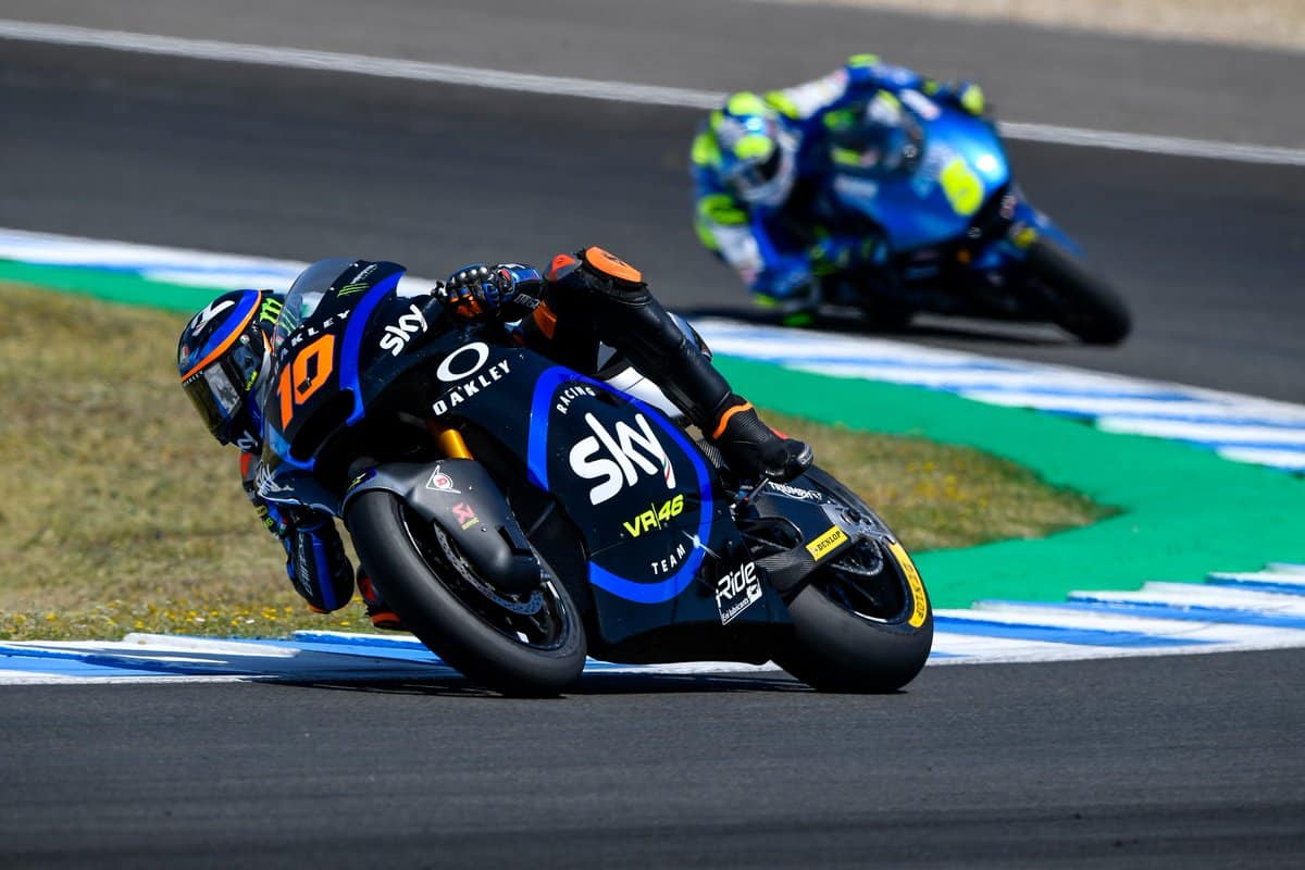 Après 20 minutes d’exercice, Marini se porte en tête en 1’53.136. Son équipier Bulega revendique une vitesse de pointe à 298 km/h avec un vent de face. le moteur Triumph se prépare à passer le cap des 300 ce week-end…