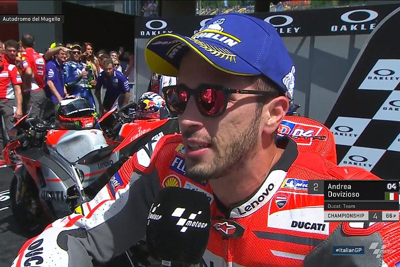 A peine descendu de sa Ducati GP18 officielle, après avoir obtenu la deuxième place du Grand Prix d’Italie à domicile, c’est un Andrea Dovizioso pas complètement satisfait qui s’est confié au micro du site officiel MotoGP.com.