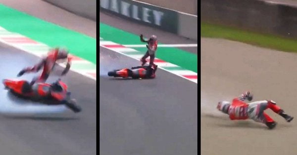 Pushing the limits and finding the limits!@marcmarquez93 tucks the front straight after the restarted session 😖#MotoGP pic.twitter.com/DUFQ7KBUGP